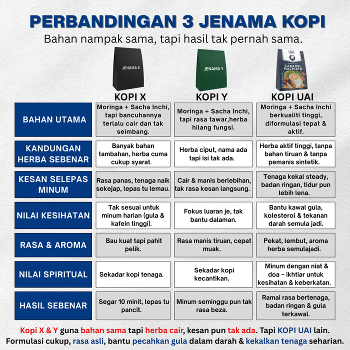 Alhamdulillah ramai berpuas hati dengan kelebihan UAI COFFEE untuk berikhtiar cegah dan memperbaiki tahap kesihatan