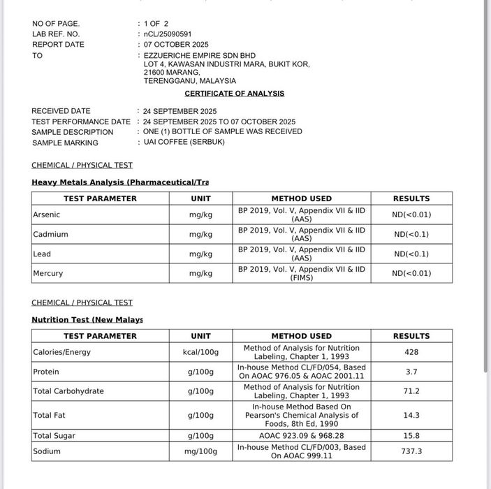 Kajian Terperinci Telah Dilakukan Terhadap Kandungan UAI Coffee